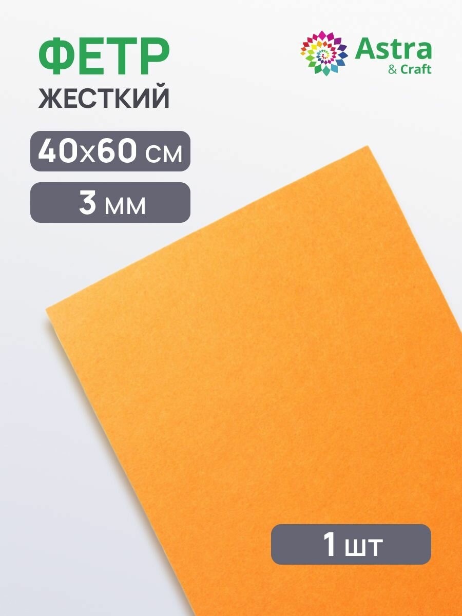 Фетр жесткий листовой Astra&Craft, 3 мм, 40х60 см (AF887 оранжевый)