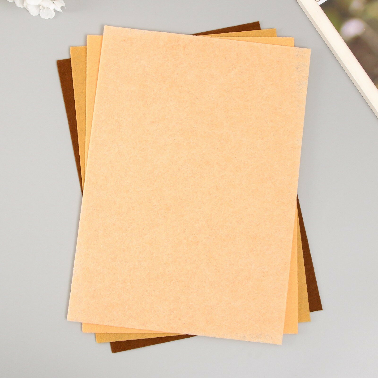Набор фетра мягкого листового ассорти Astra&Craft, 1,4 мм, 20х30 см, 4 шт (5 бежевый, темно-зеленый, коричневый, теракот)