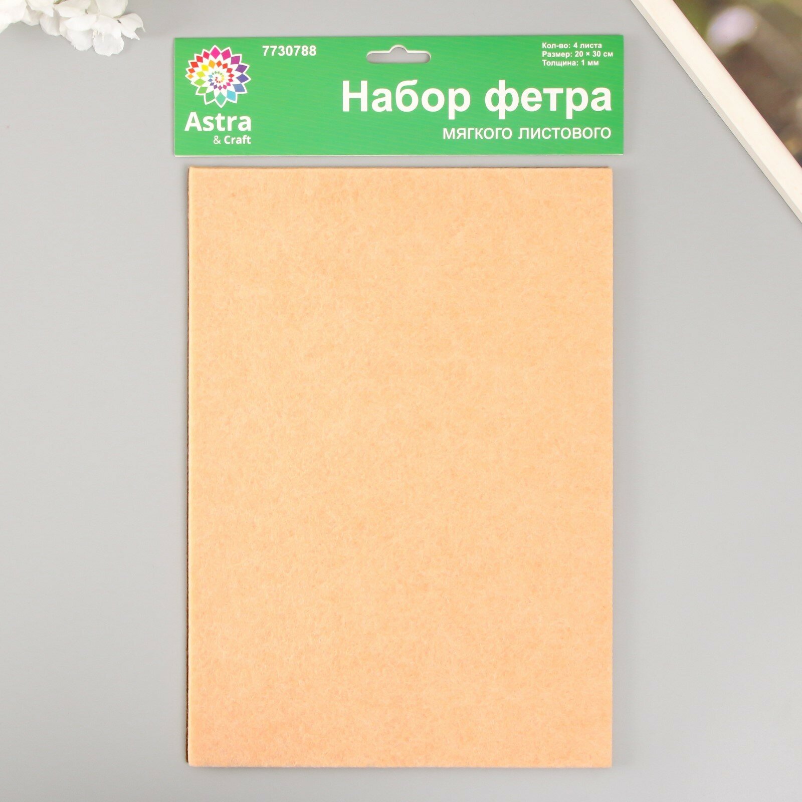 Фетр жесткий листовой Astra&Craft, 3 мм, 20х30 см, 3 шт (AF823 телесный)