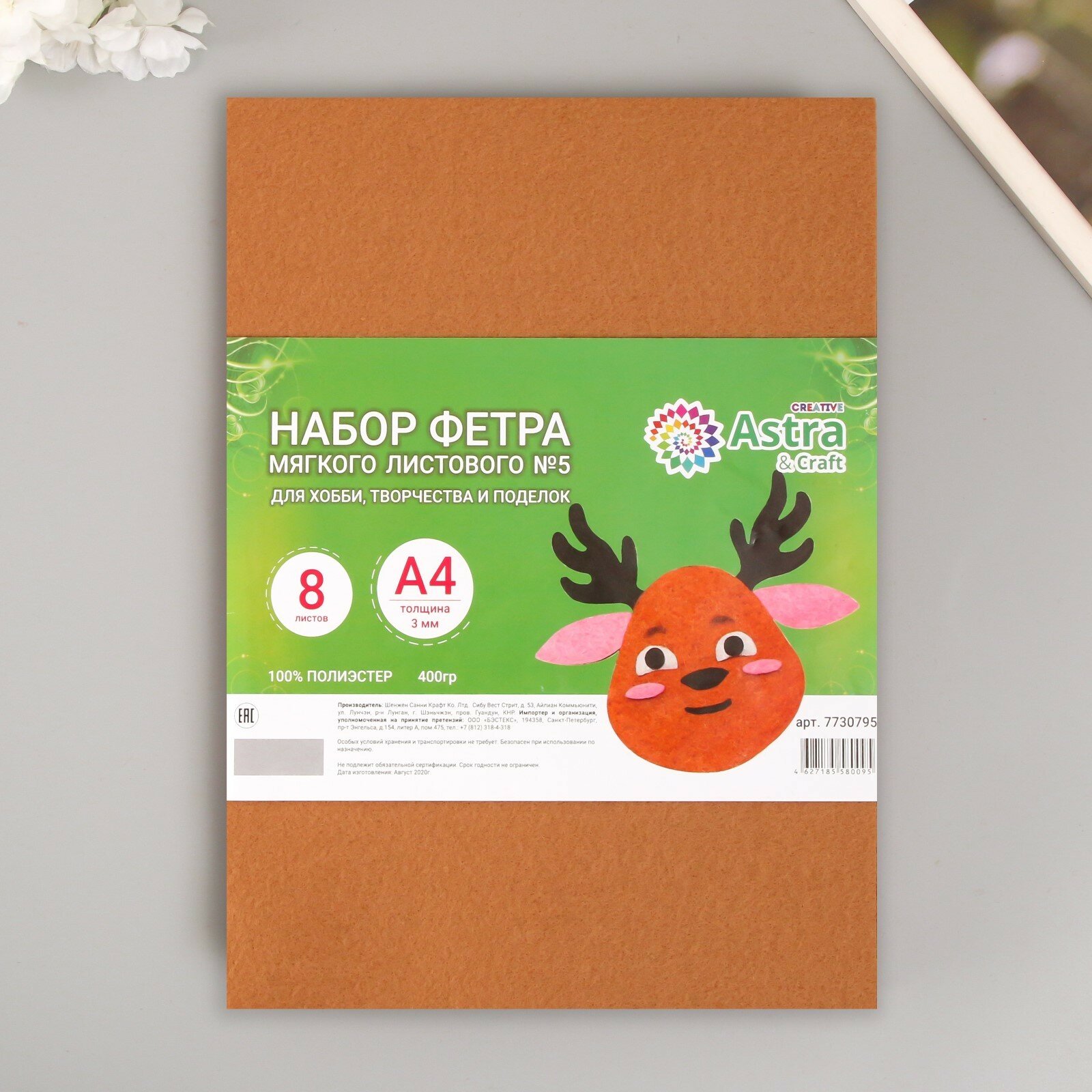 Набор мягкого фетра "Астра" (8 шт) ассорти, 3 мм, 400 гр. 20х30 см интересное: