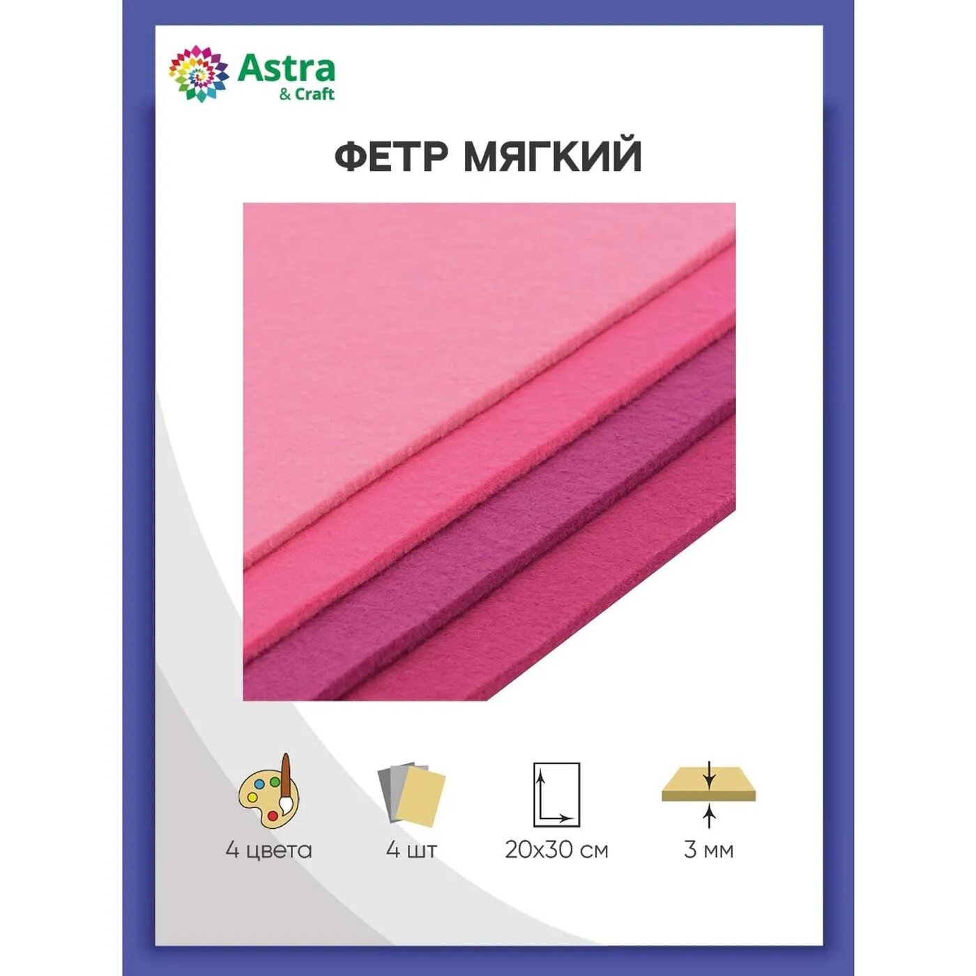 Фетр Astra Craft Листовой мягкий ассорти толщина 3 мм размер 20х30 см в упаковке 4 шт цвет номер 3 интересное: