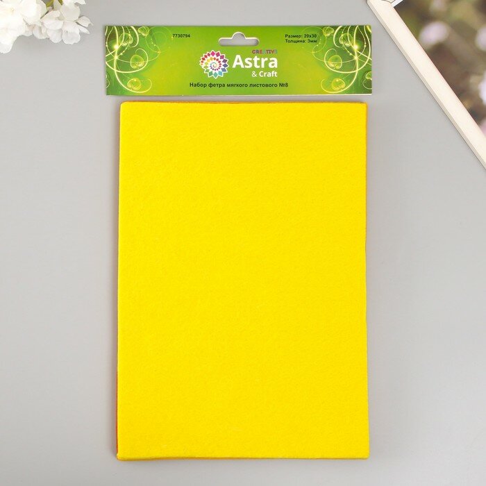 Фетр Astra&Craft Листовой мягкий, ассорти, №8, 3 мм, 400 г, 20х30 см, 4 шт интересное: