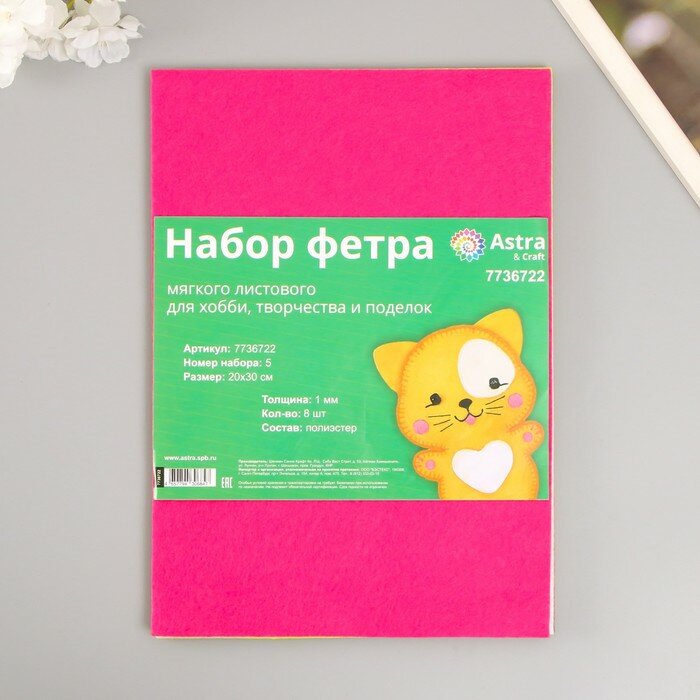 СохранитьФетр Astra&Craft Листовой мягкий, ассорти, №5, 1 мм, 170 г, 20х30 см, 8 шт интересное: