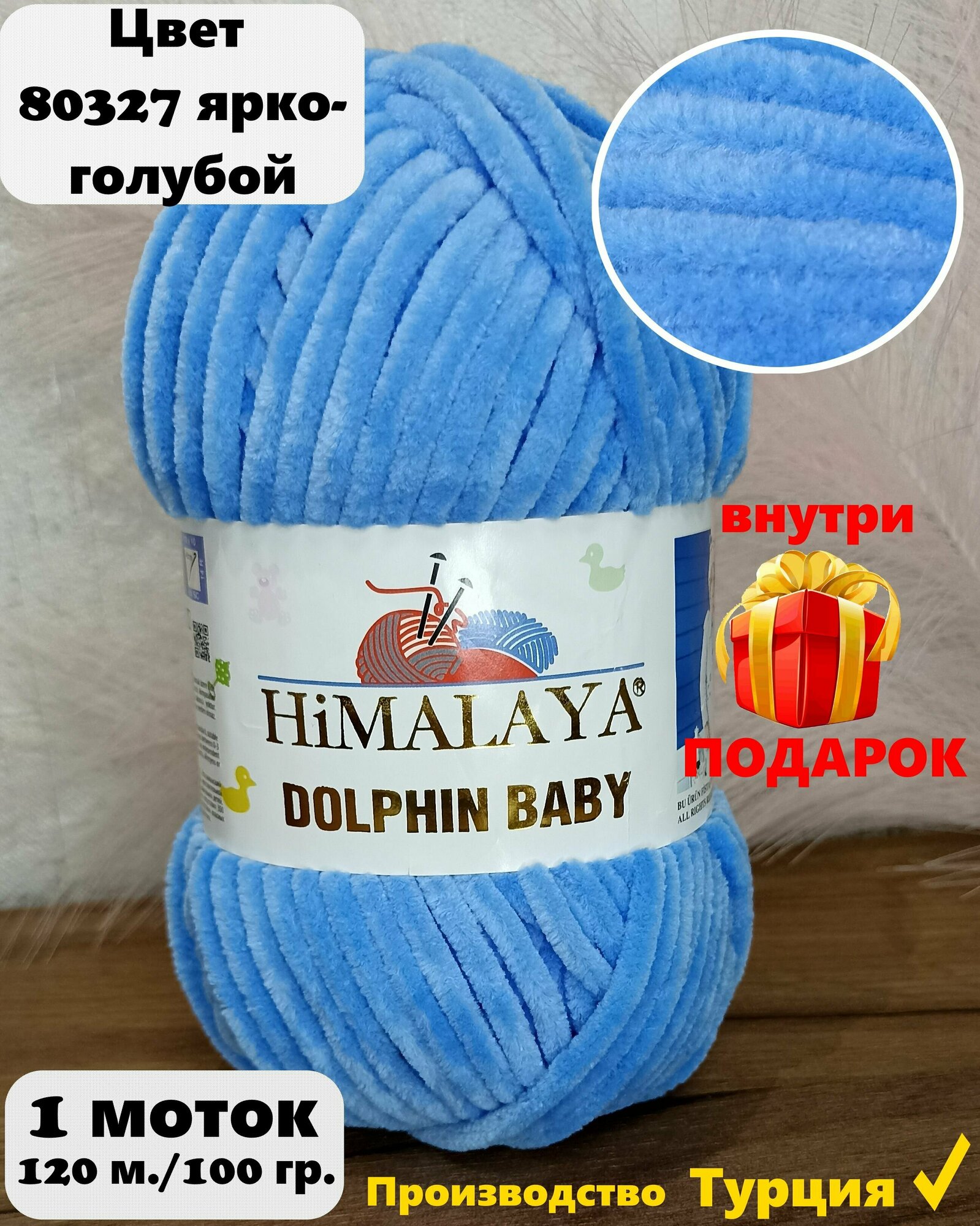 Плюшевая пряжа Himalaya Dolphin baby 1шт, 354 лазурный , 100г. 120м.