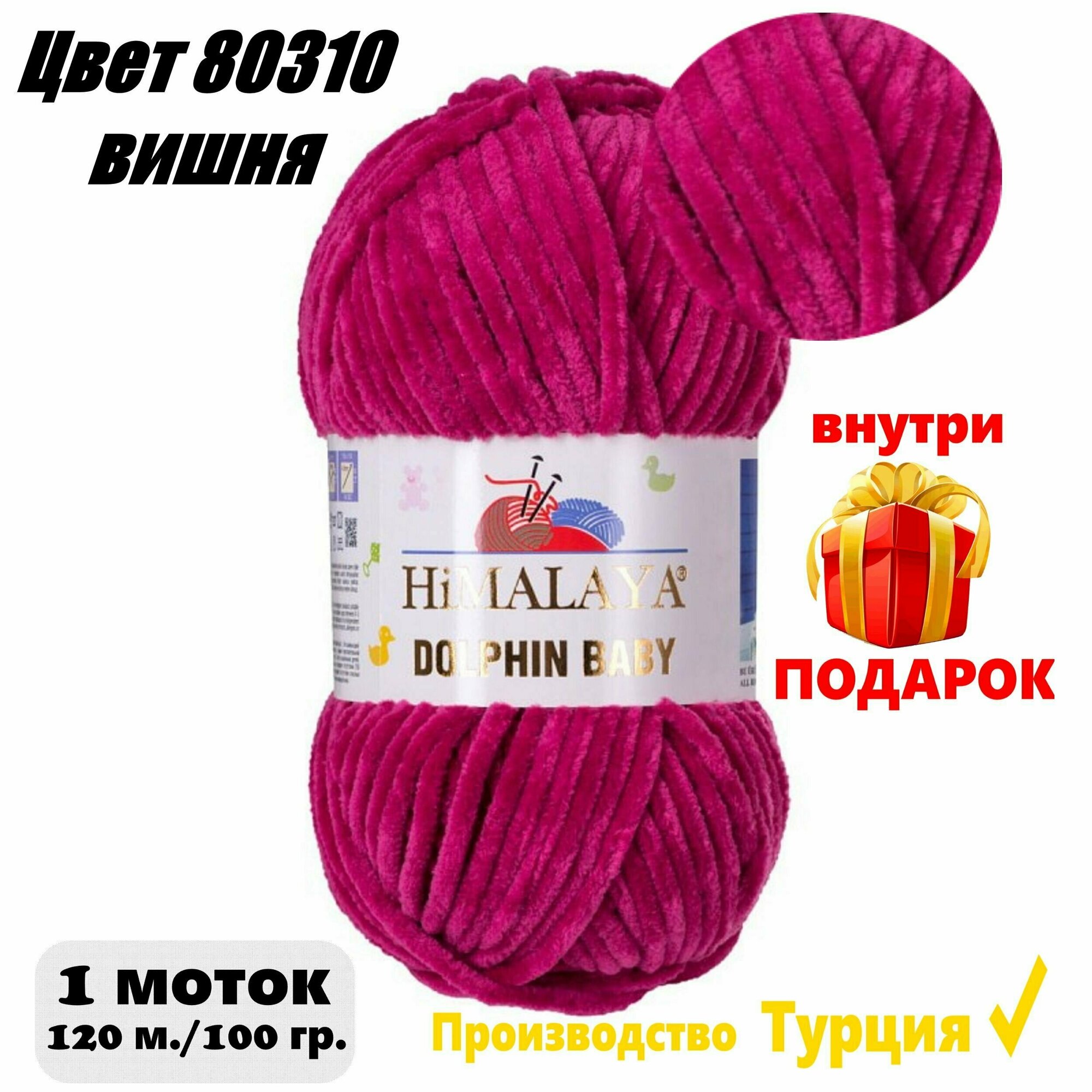 Пряжа Himalaya Dolphin Baby - 1 шт, малиновый (80310), 120м/100г, плюшевая, Гималая Долфин Беби