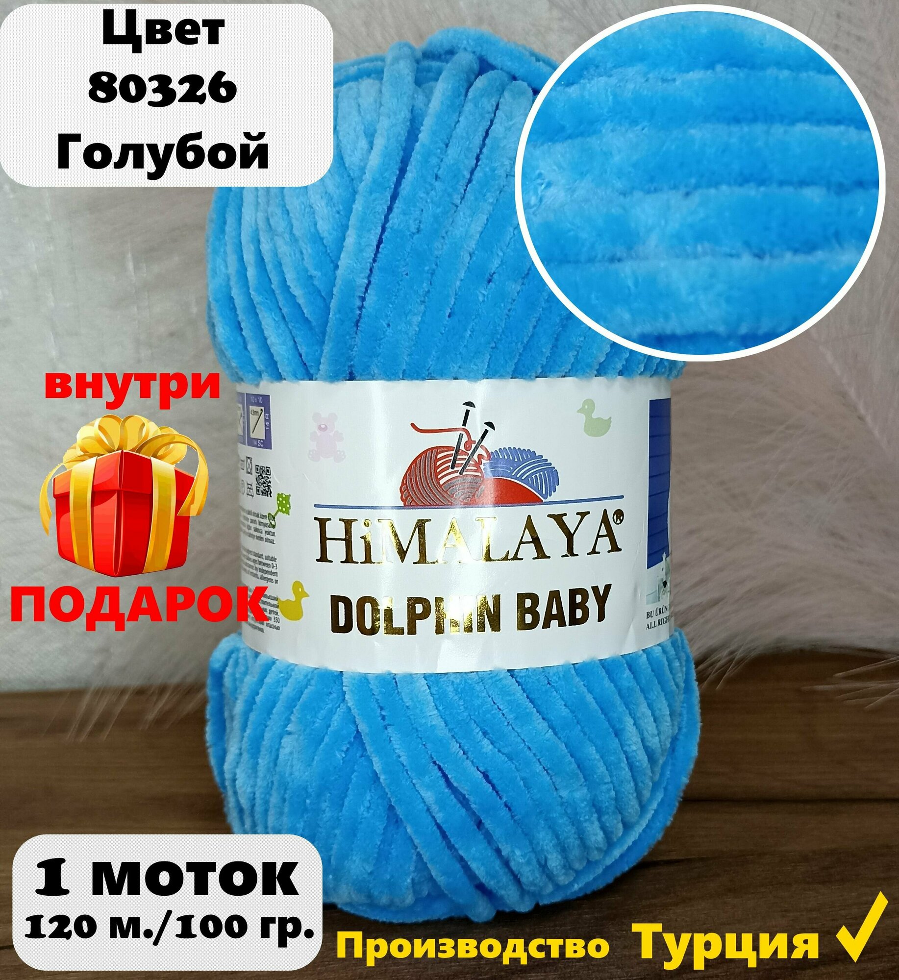 Плюшевая пряжа Himalaya Dolphin baby 1шт, 354 лазурный , 100г. 120м.