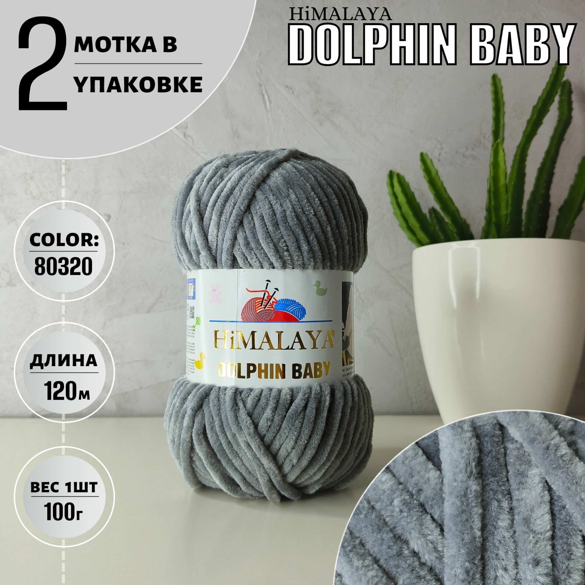 Пряжа Himalaya Dolphin baby светло-серый (80325), 100%полиэстер, 120м, 100г, 2шт