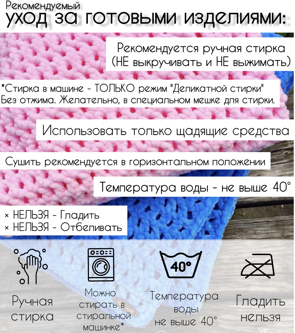 | Плотность вязания для образца 10х10 см | для спиц 14 рядов х 10 петель, для крючка 14 рядов х 14 петель |
