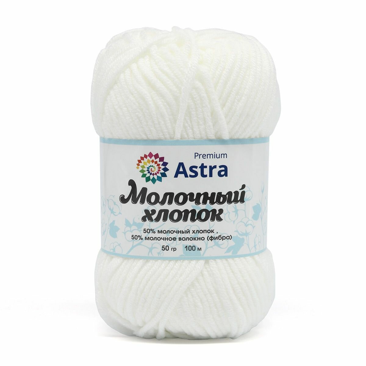 Пряжа для вязания Astra Premium 'Молочный хлопок' (Milk Cotton) 50гр 100м (+/-5%) (50% хлопок, 50% молочный акрил) (19 белый), 3 мотка