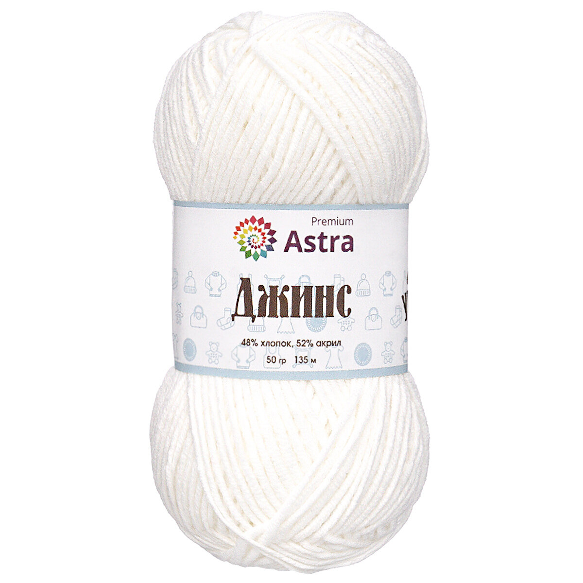 Пряжа для вязания Astra Premium 'Джинс' (Jeans), 50г, 135м (48% хлопок, 52% акрил) (020 молочный), 4 мотка