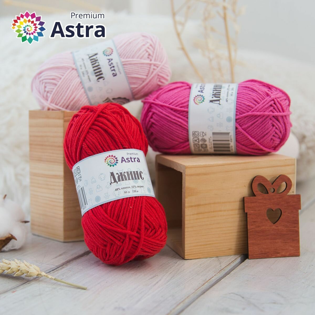Пряжа для вязания Astra Premium 'Джинс' (Jeans), 50г, 135м (48% хлопок, 52% акрил) (150 красный), 4 мотка