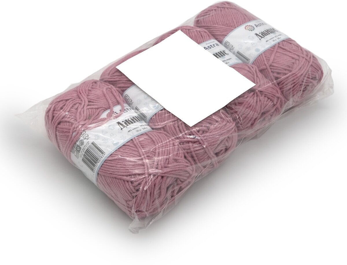СохранитьПряжа для вязания Astra Premium 'Джинс' (Jeans), 50г, 135м (48% хлопок, 52% акрил) (140 пыльная роза), 4 мотка интересное:
