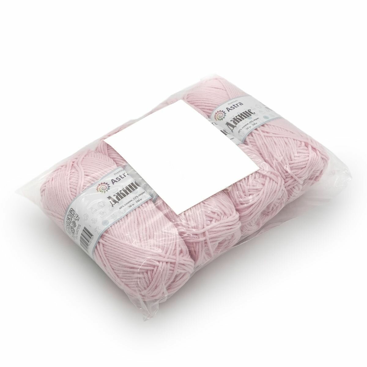 СохранитьПряжа Astra Premium "Джинс", 50 гр 135 м, 48% хлопок, 52% акрил, 105 светло-розовый, 4 шт интересное: