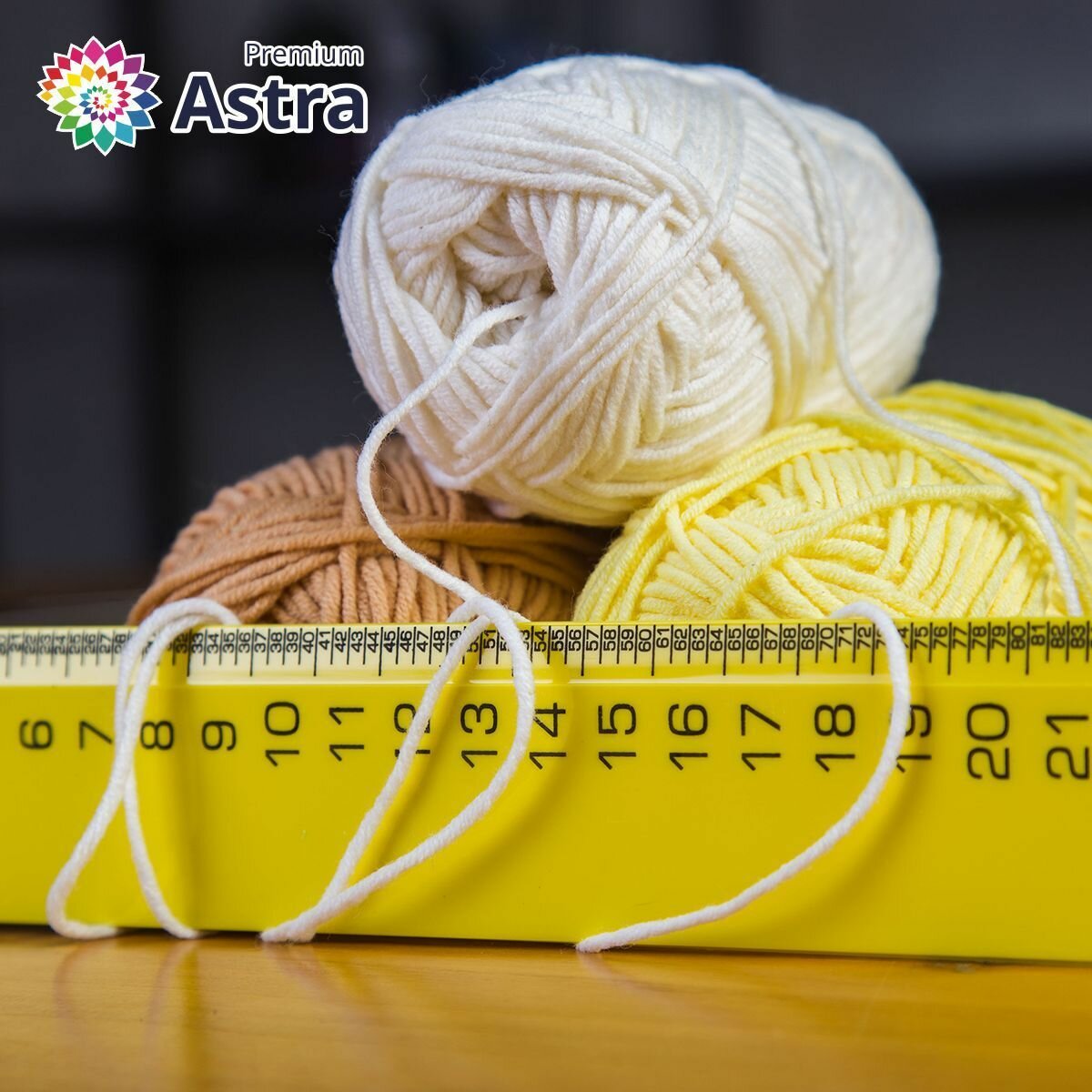 Пряжа Astra Premium "Джинс", 50 гр 135 м, 48% хлопок, 52% акрил, 020 молочный, 4 шт