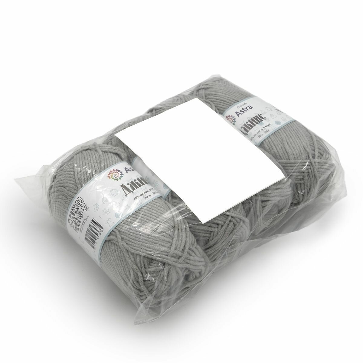 Пряжа Astra Premium "Джинс", 50 гр 135 м, 48% хлопок, 52% акрил, 020 молочный, 4 шт