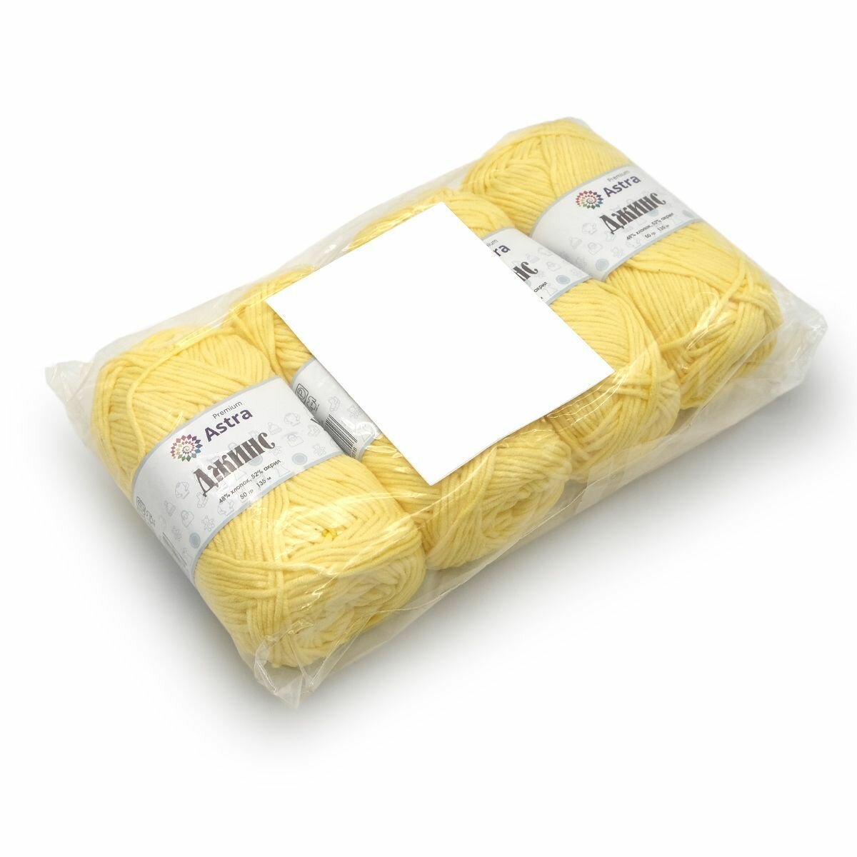 Пряжа для вязания Astra Premium 'Джинс' (Jeans), 50г, 135м (48% хлопок, 52% акрил) (310 желтый), 4 мотка