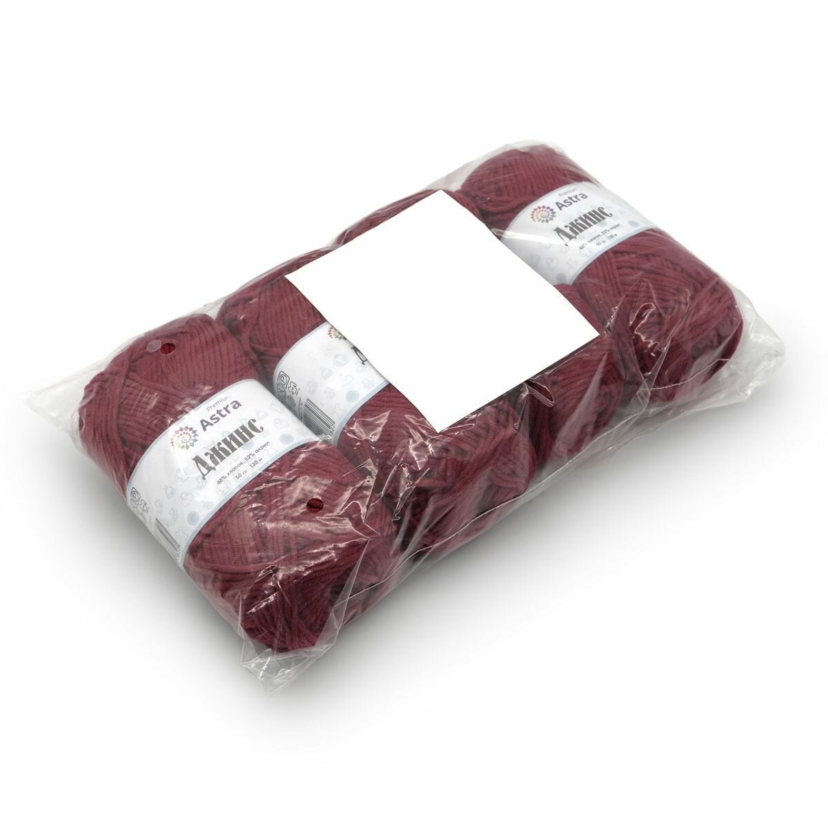 Пряжа для вязания Astra Premium 'Джинс' (Jeans), 50г, 135м (48% хлопок, 52% акрил) (190 темно-красный), 4 мотка