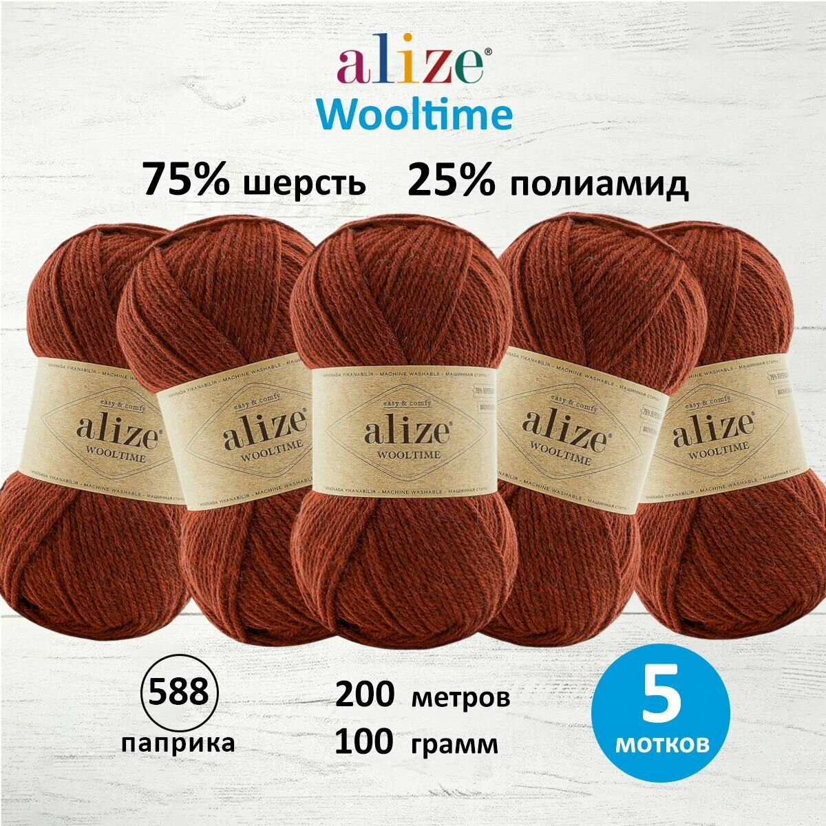 Купить Пряжа для вязания ALIZE 'Wooltime', 100г, 200м (75% SW шерсть, 25% полиамид) (588 паприка), 5 мотков