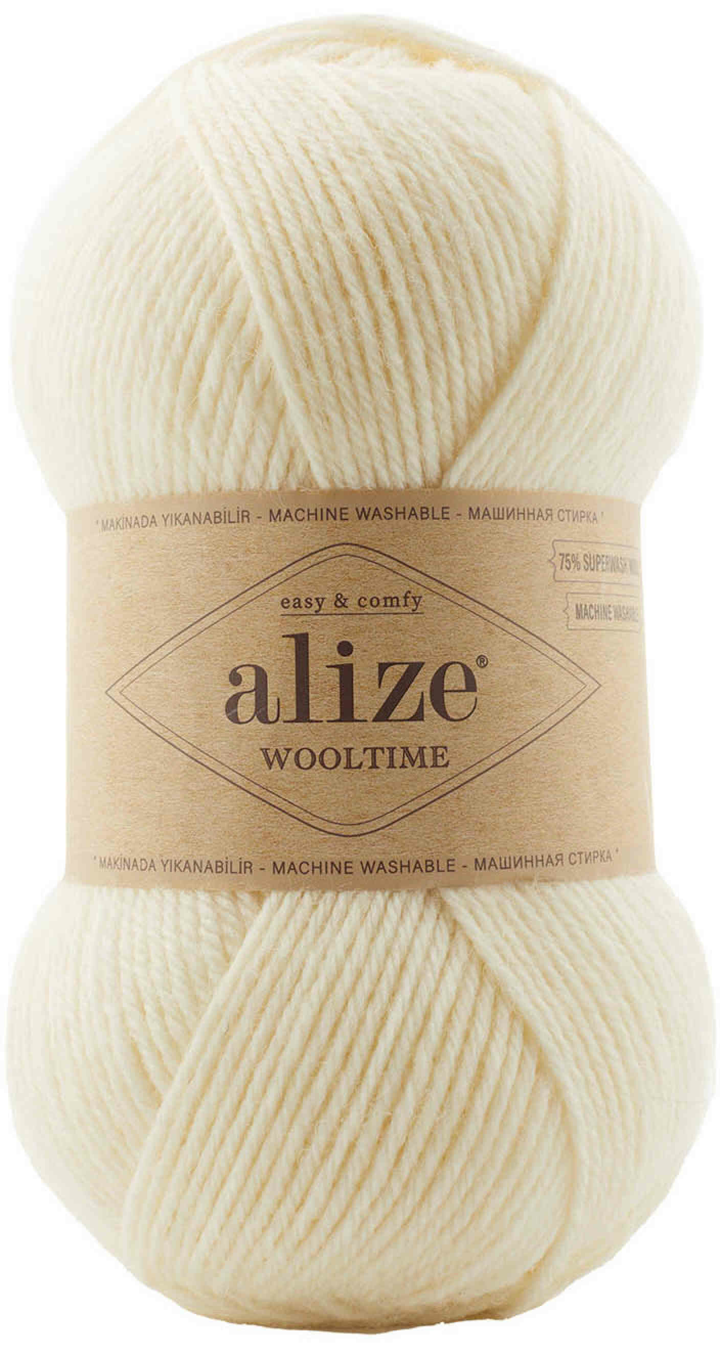 Купить Пряжа Wooltime Alize. Ализе Вултайм 2 мотка по 100 гр. Цвет: 01 кремовый. Состав: 75% супервош-шерсть 25% полиамид. Метраж: 100 гр. 200 м.