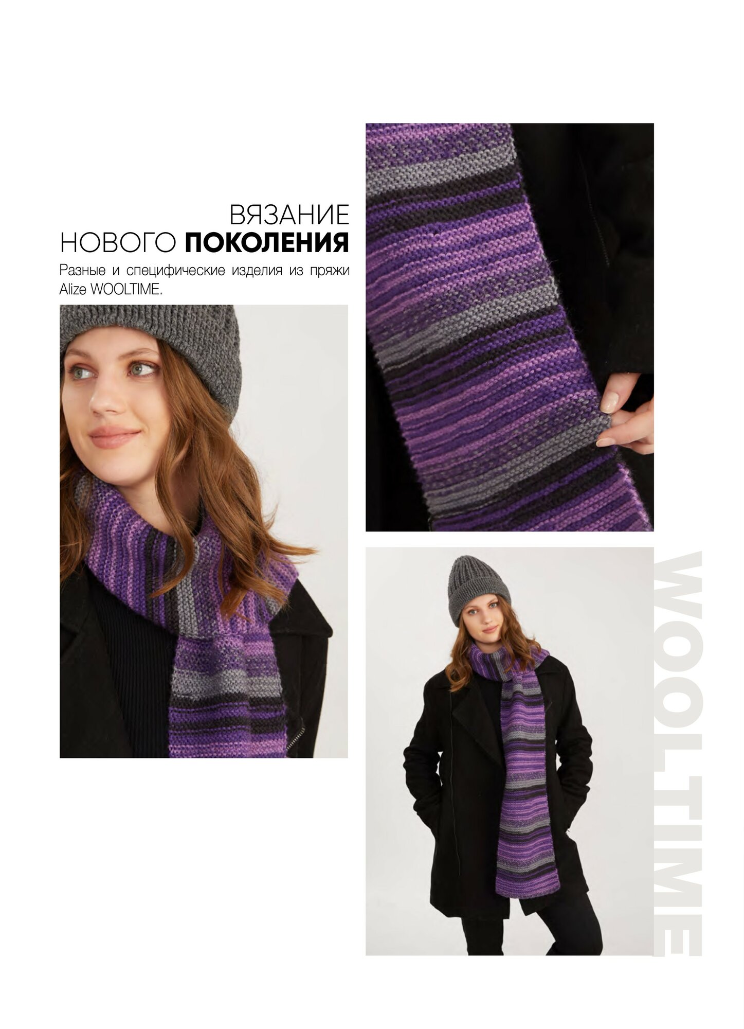 Пряжа Alize Wooltime принт черный-серый-сиреневый (11013), 75%шерсть/25%полиамид, 200м, 100г, 5шт