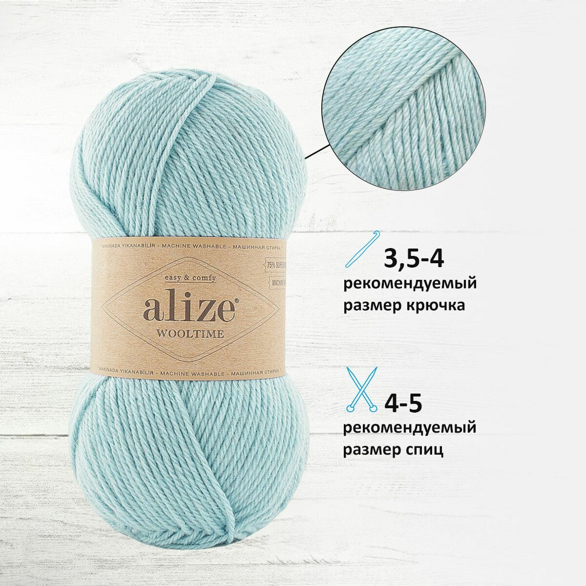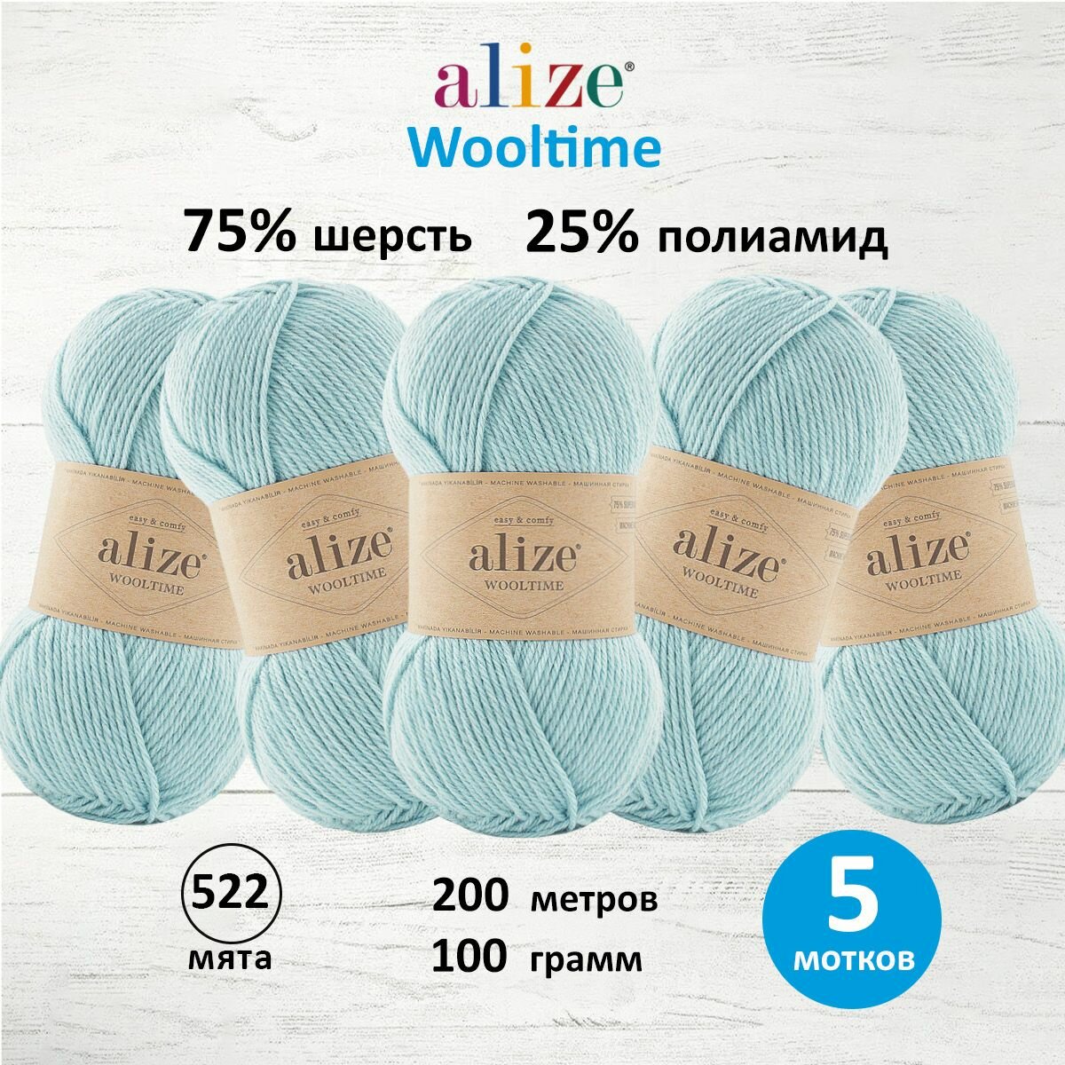 СохранитьПряжа для вязания ALIZE 'Wooltime', 100г, 200м (75% SW шерсть, 25% полиамид) (522 мята), 5 мотков интересное: