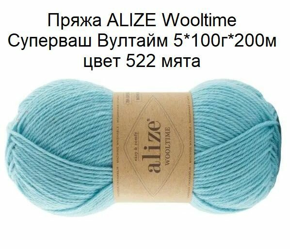 Купить Пряжа для вязания ALIZE 'Wooltime', 100г, 200м (75% SW шерсть, 25% полиамид) (522 мята), 5 мотков