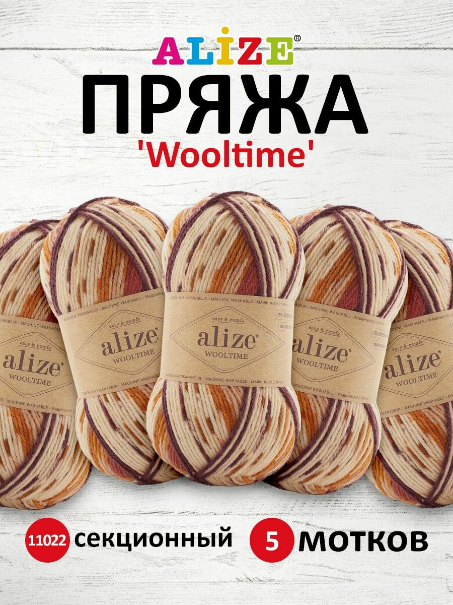 Пряжа ALIZE "Wooltime", 100 гр, 200 м, 75% SW шерсть, 25% полиамид, 11023 секционный, 5 шт