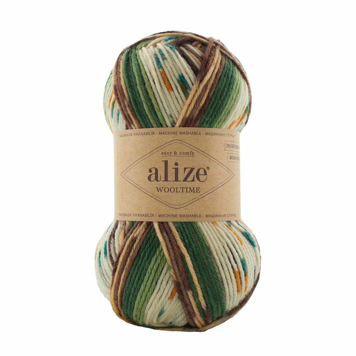 Пряжа Wooltime, Alize, бел/беж/корич - 11023, 75% SW шерсть, 25% полиамид, 5 мотков, 100 г., 200 м.