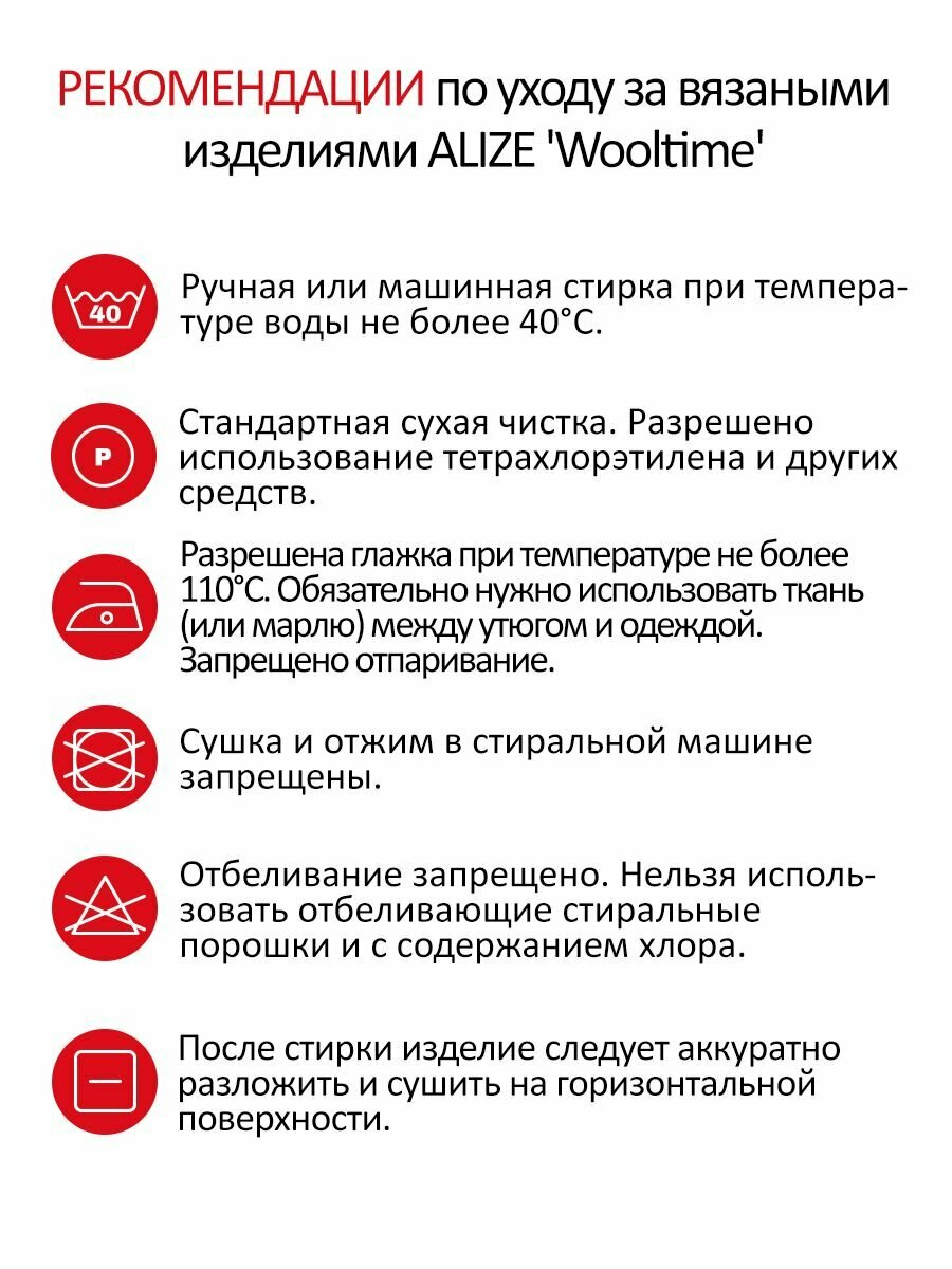 Пряжа ALIZE Wooltime Суперваш Вултайм 5*100г*200м цвет 588 Паприка