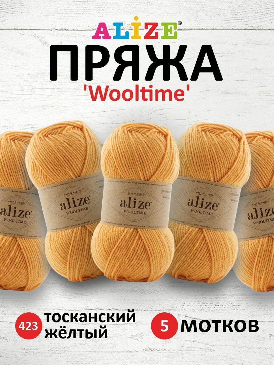 Пряжа Alize Wooltime тосканский желтый (423), 75%шерсть/25%полиамид, 200м, 100г, 5шт