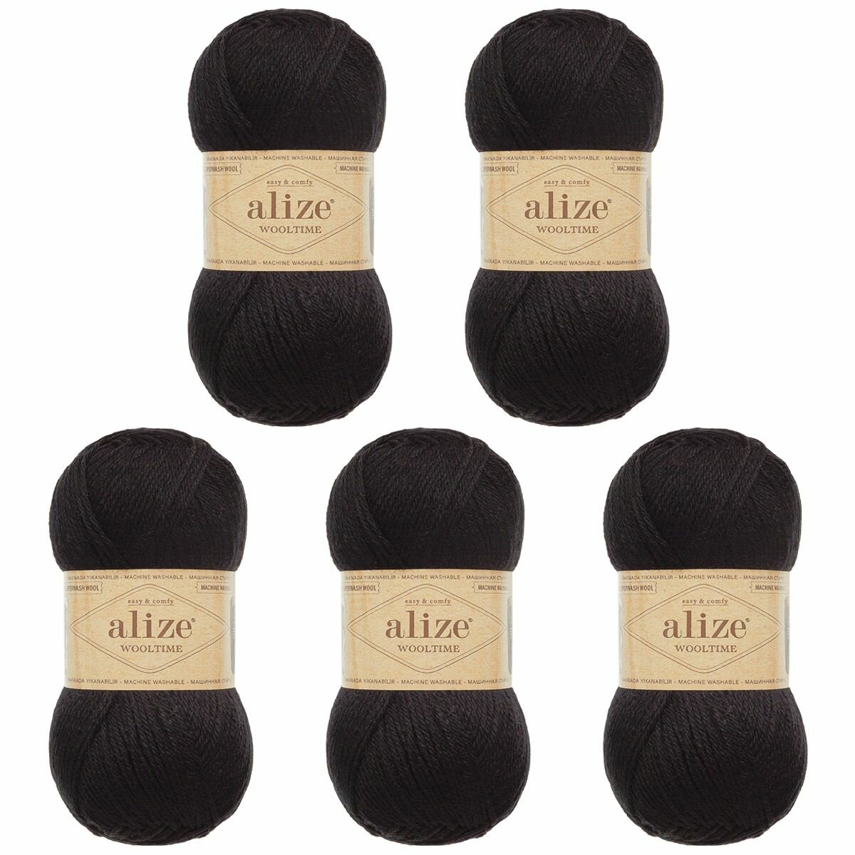 Пряжа Alize Wooltime чёрный (60), 75%шерсть/25%полиамид, 200м, 100г, 5шт