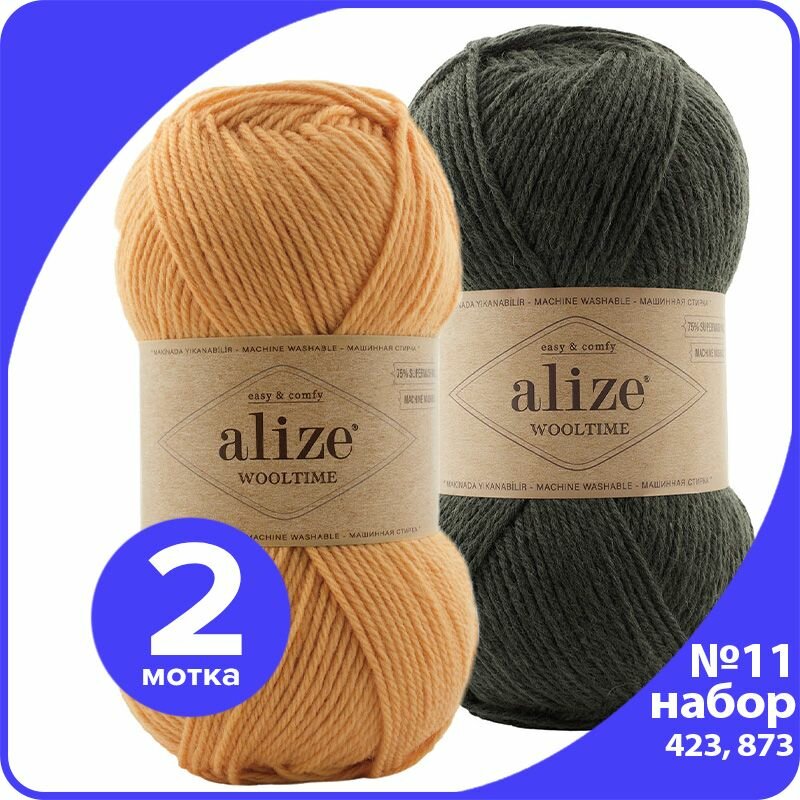 Купить Пряжа Alize Wooltime (Ализе Вултайм) - набор № 11 (423, 873), 100 г / 200 м (75% шерсть, 25% полиамид) - 2 шт