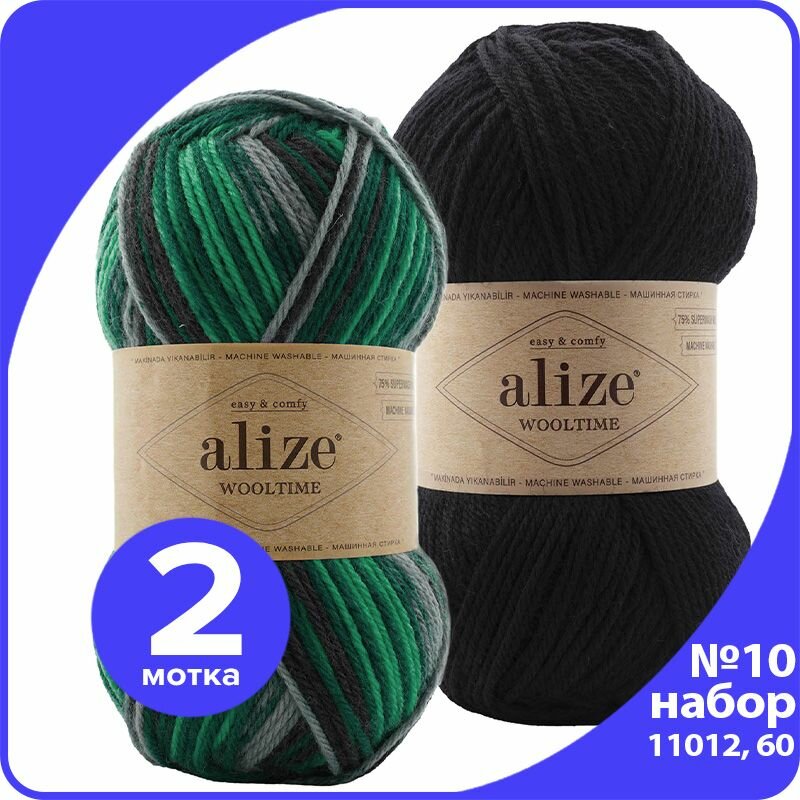 Купить Пряжа Alize Wooltime (Ализе Вултайм) - набор № 10 (11012, 60), 100 г / 200 м (75% шерсть, 25% полиамид) - 2 шт