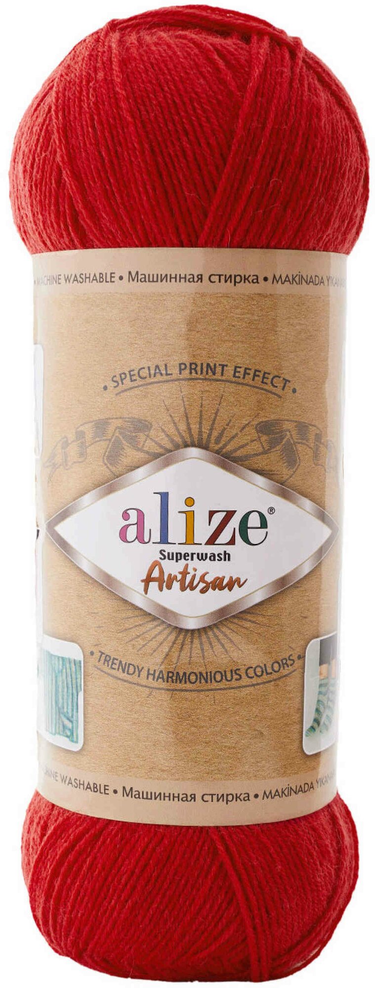 Пряжа Superwash Artisan Alize - 1 моток (100 грамм, 420 м), цвет 056 красный