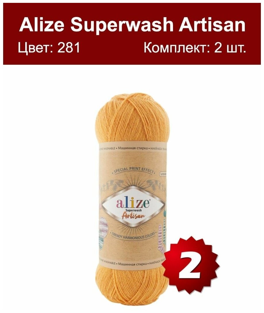Купить Пряжа Alize Superwash Artisan желтый (281), 75%шерсть/25%полиамид, 420м, 100г, 2шт