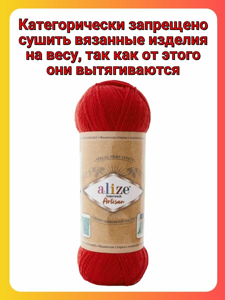 СохранитьПряжа Alize Superwash Artisan 56 красный, 100 г, 420 м, 5 штук интересное: