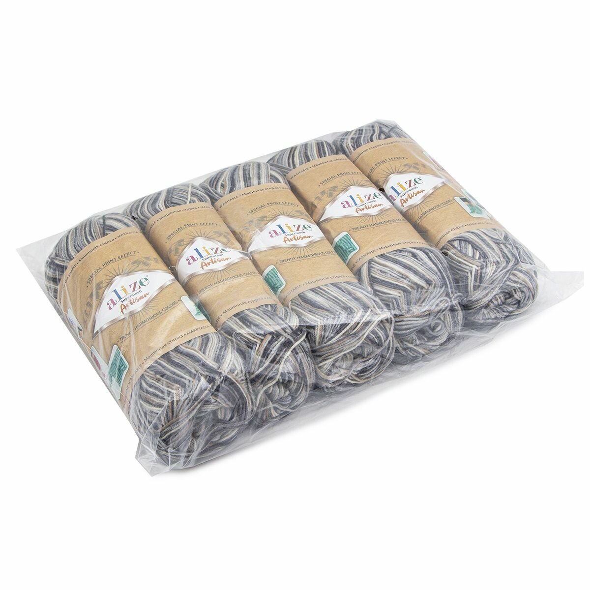 Пряжа Alize Superwash Artisan, цвет 9012, 5 мотков по 100 г/420 м (75% шерсть, 25% полиамид) ализе супервош артисан