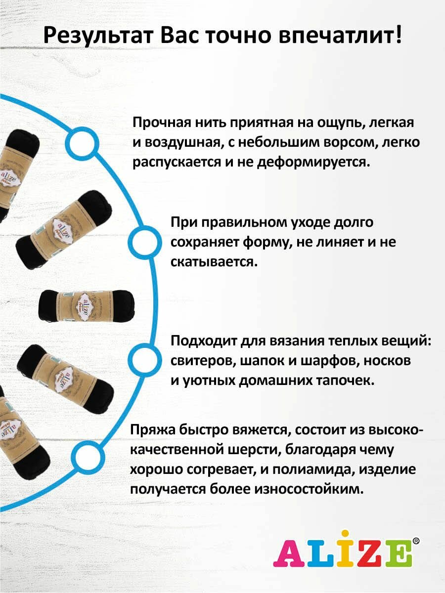 СохранитьПряжа ALIZE SUPERWASH 100, черный - 60, 75% SW шерсть, 25% полиамид, 5 мотков, 100 г., 420 м. интересное: