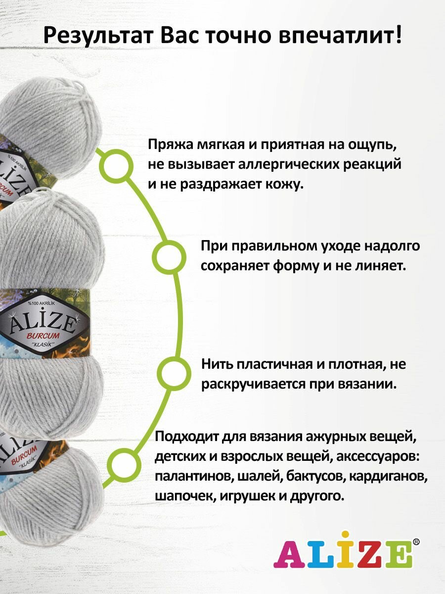 СохранитьПряжа для вязания ALIZE 'BURCUM KLASIK' 100г, 210м (100% Акрил) (208 светло-серый меланж), 5 мотков интересное: