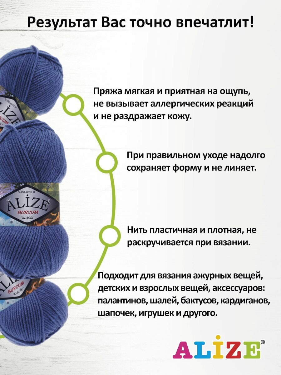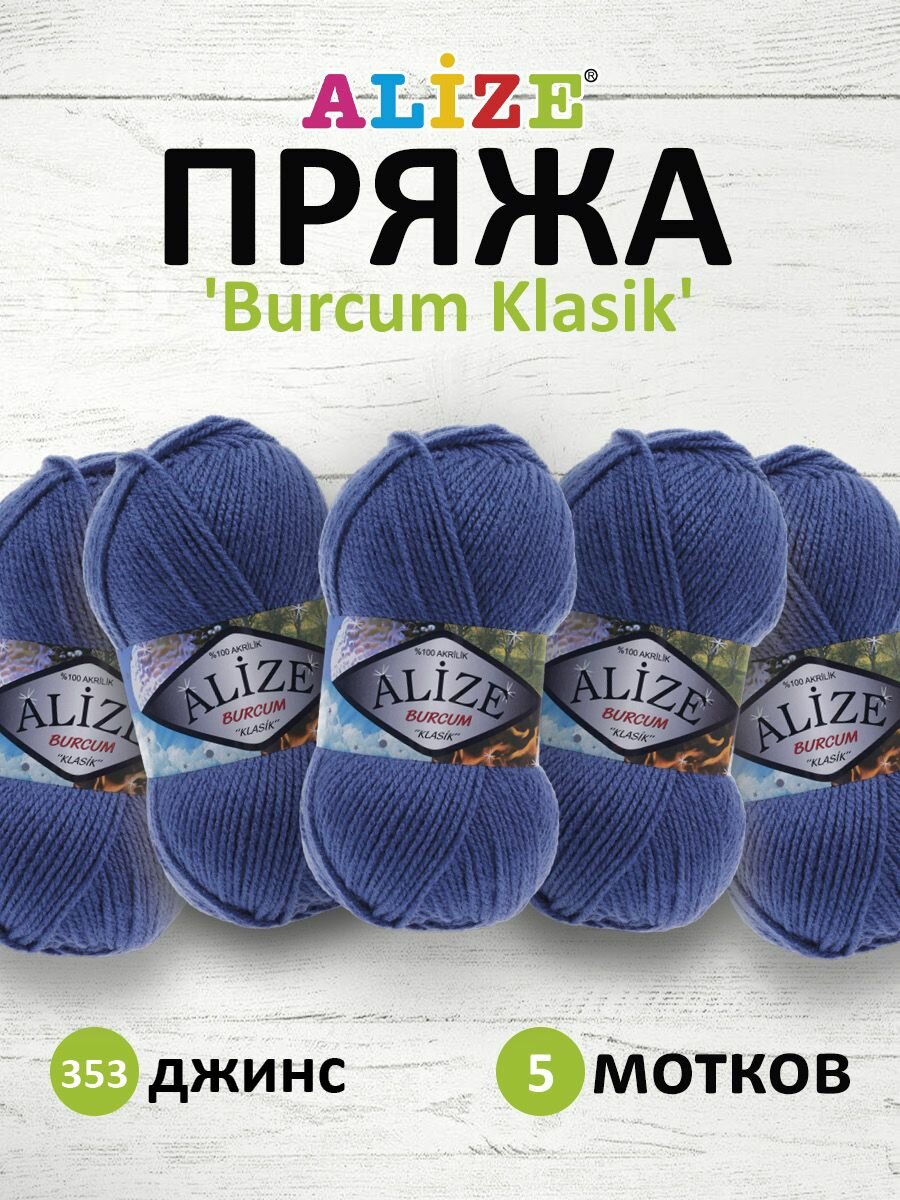 СохранитьПряжа для вязания Alize Burcum Klasik 353 джинс, 100 г, 210 м, 5 штук интересное: