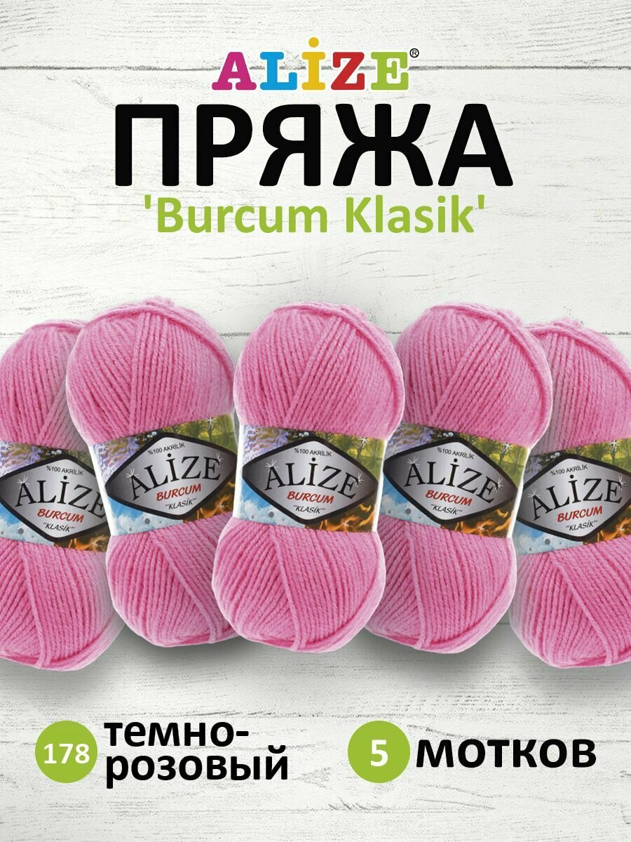 Пряжа для вязания ALIZE 'Burcum Klasik', 100г, 210м (100% Aкрил) (178 тёмно-розовый), 5 мотков