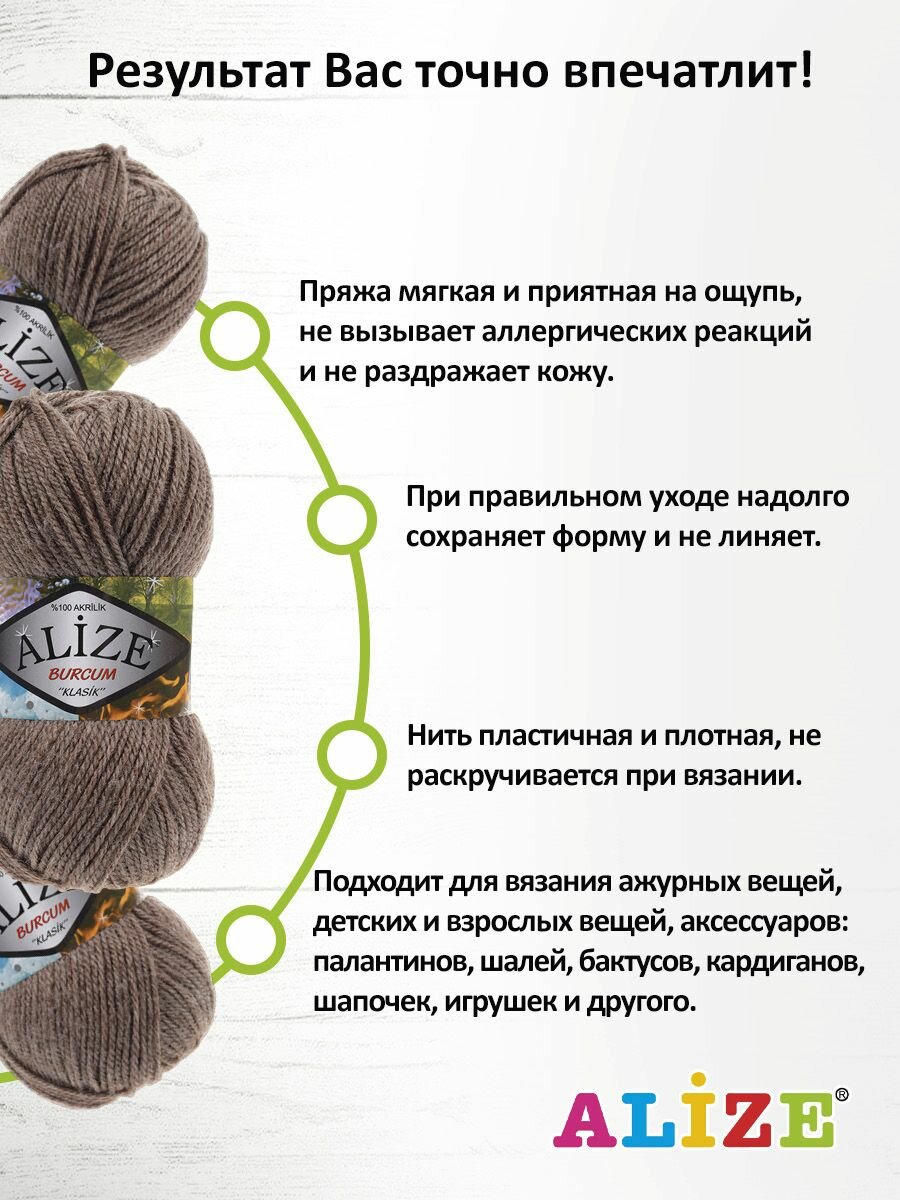 Пряжа для вязания ALIZE 'BURCUM KLASIK' 100гр. 210м (100% Акрил) (493 каштановый), 5 мотков