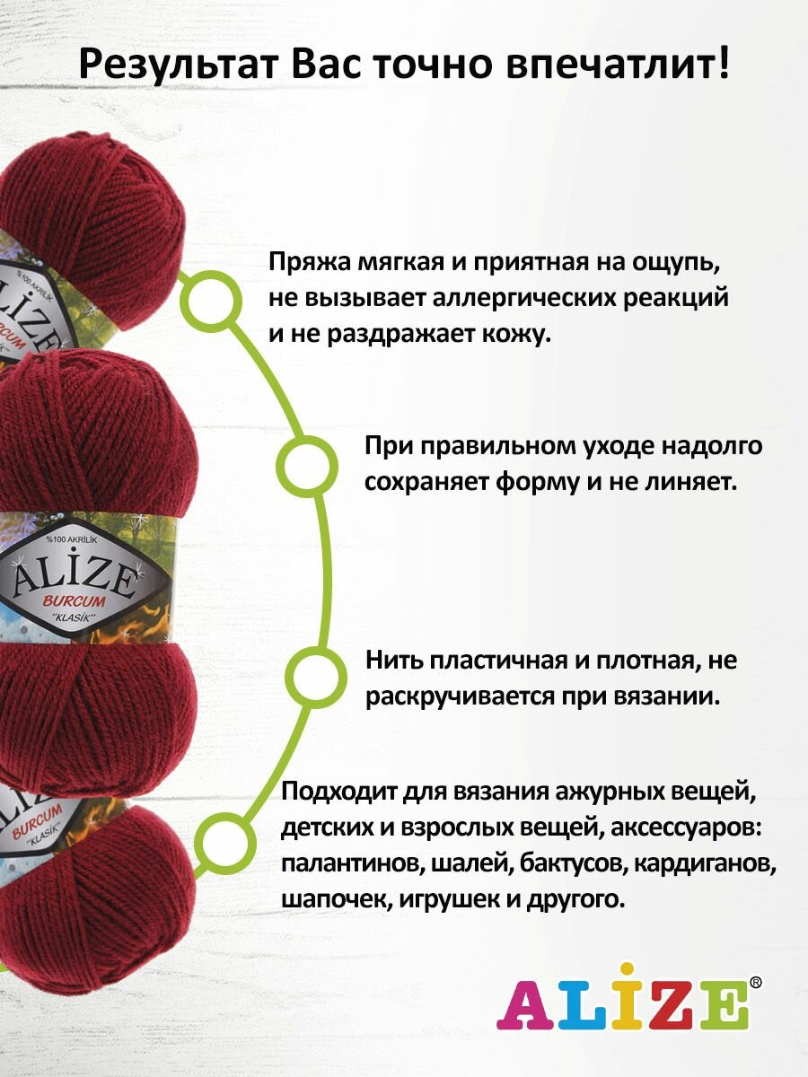СохранитьПряжа для вязания Alize Burcum Klasik 57 бордовый, 100 г, 210 м, 5 штук интересное: