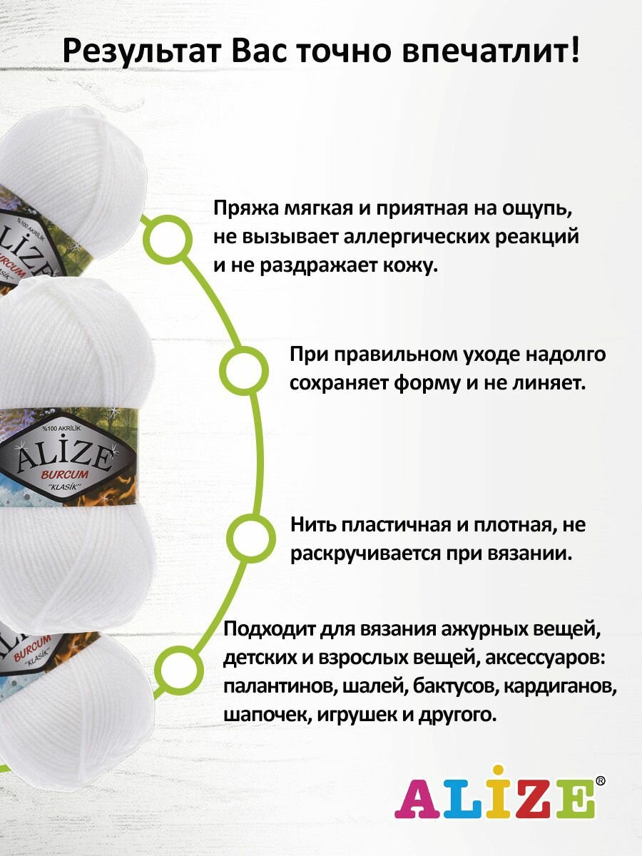 СохранитьПряжа для вязания ALIZE 'BURCUM KLASIK' 100г, 210м (100% Акрил) (55 белый), 5 мотков интересное: