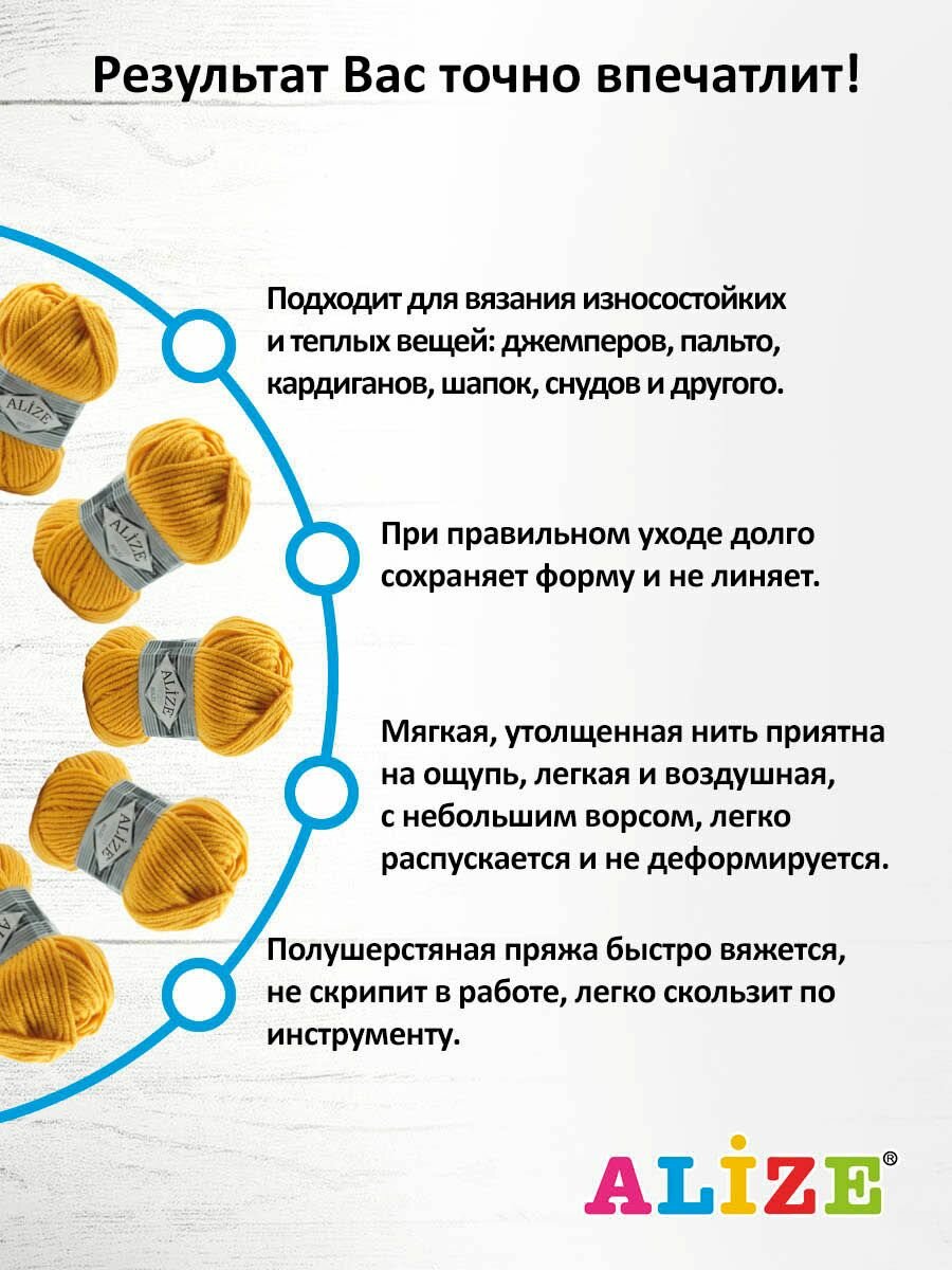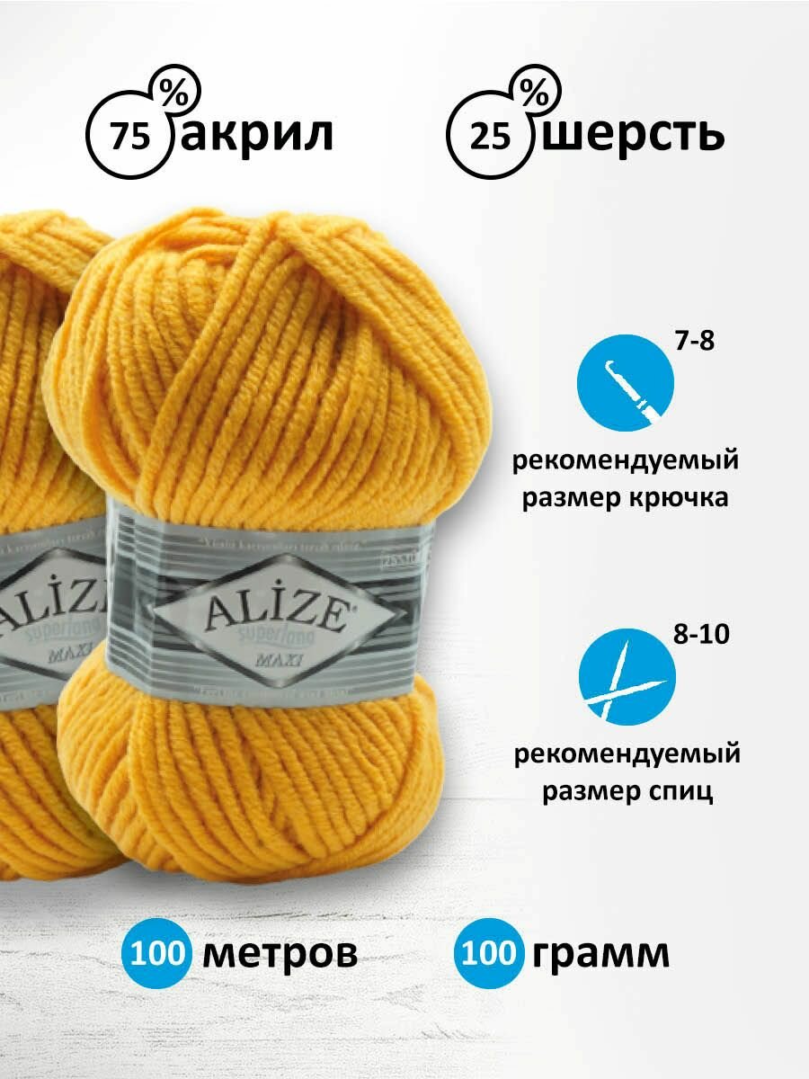 Пряжа Alize Superlana Maxi (Ализе Суперлана Макси) - 3 мотка 02 шафран 75% акрил, 25% шерсть 100м/100г