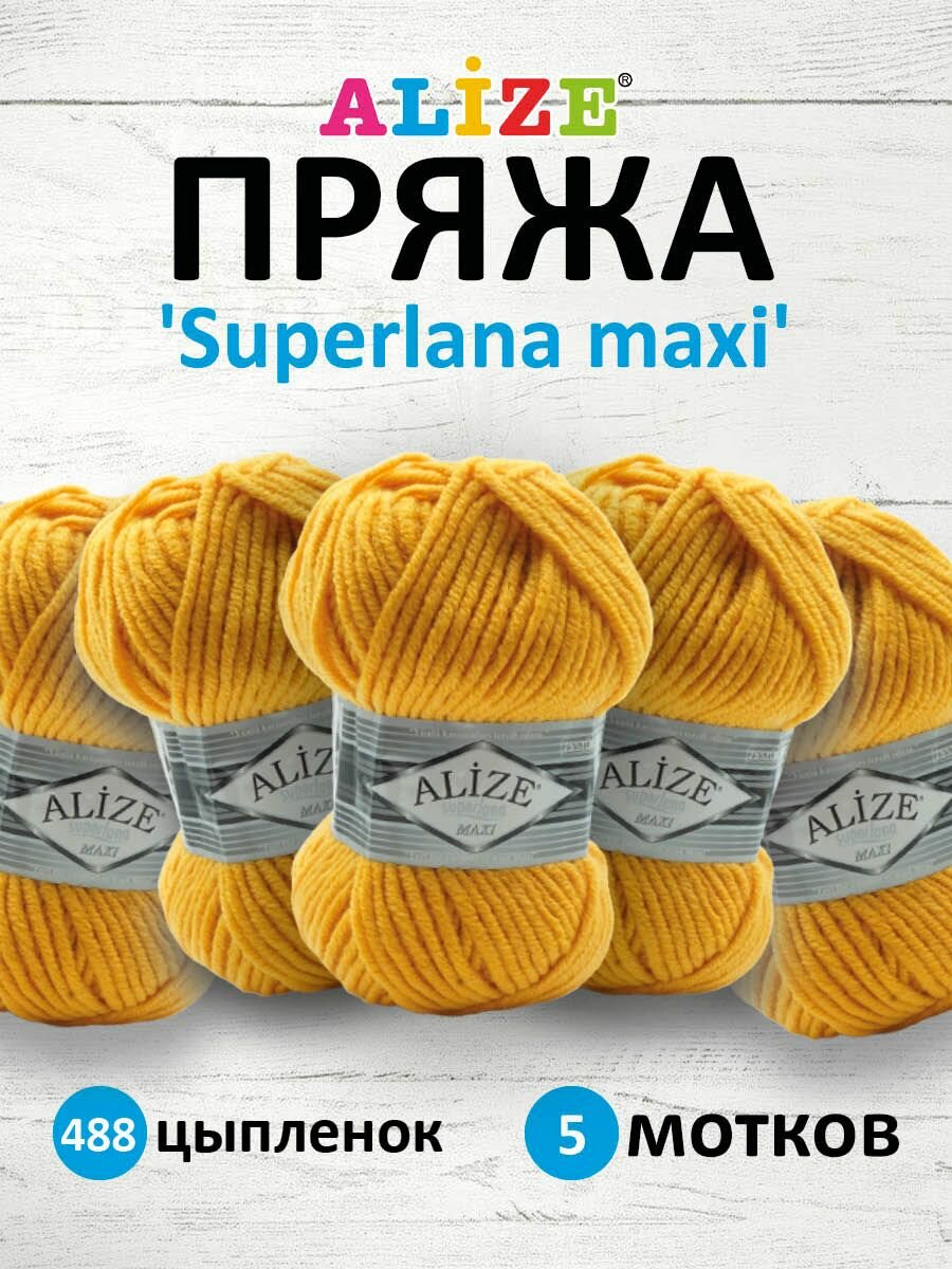 Купить Пряжа для вязания ALIZE 'Superlana maxi', 100г, 100м (75% акрил, 25% шерсть), ТУ (488 цыпленок), 5 мотков