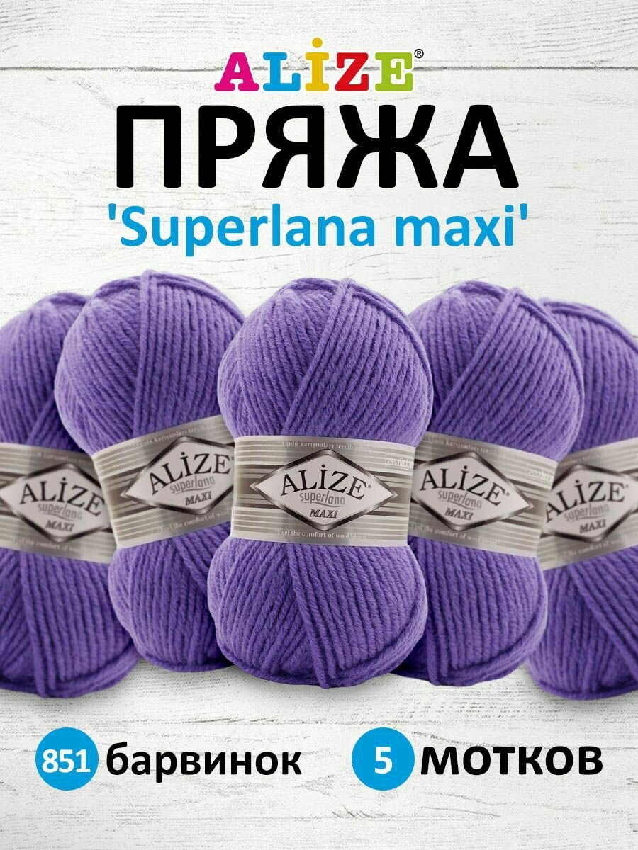 Купить Пряжа для вязания ALIZE 'Superlana maxi', 100г, 100м (75% акрил, 25% шерсть), ТУ (851 барвинок), 5 мотков