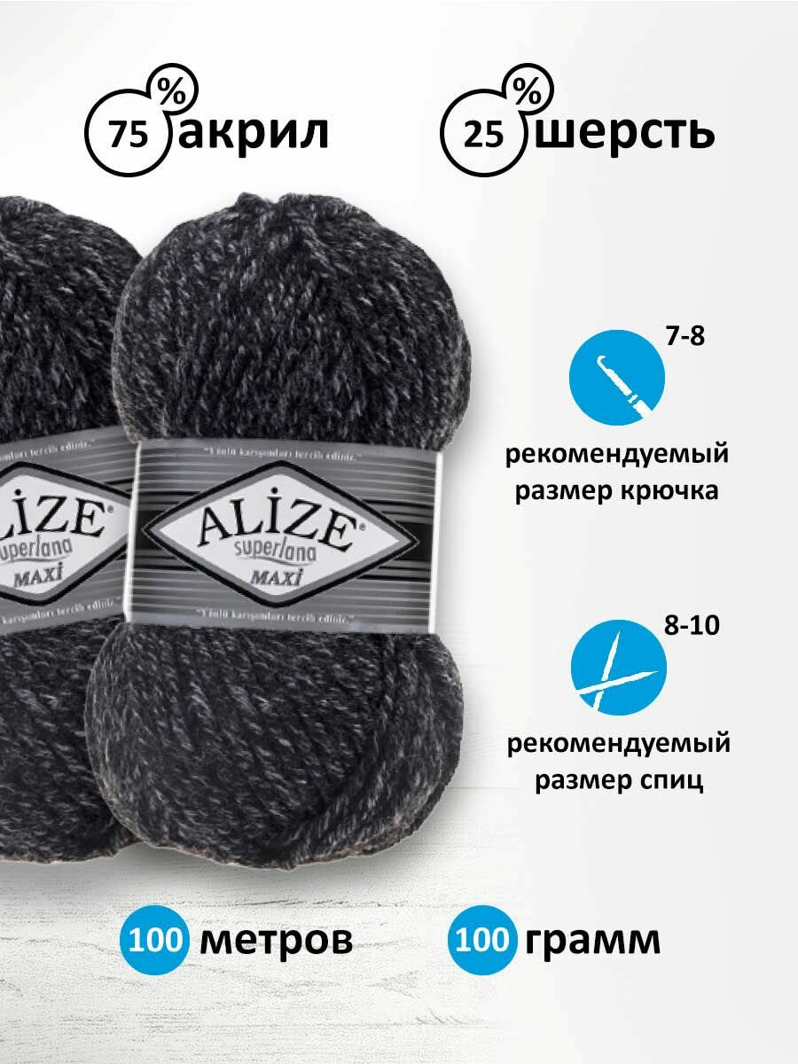 Купить Пряжа для вязания ALIZE 'Superlana maxi', 100г, 100м (75% акрил, 25% шерсть), ТУ (800 антрацитовый жаспе), 5 мотков