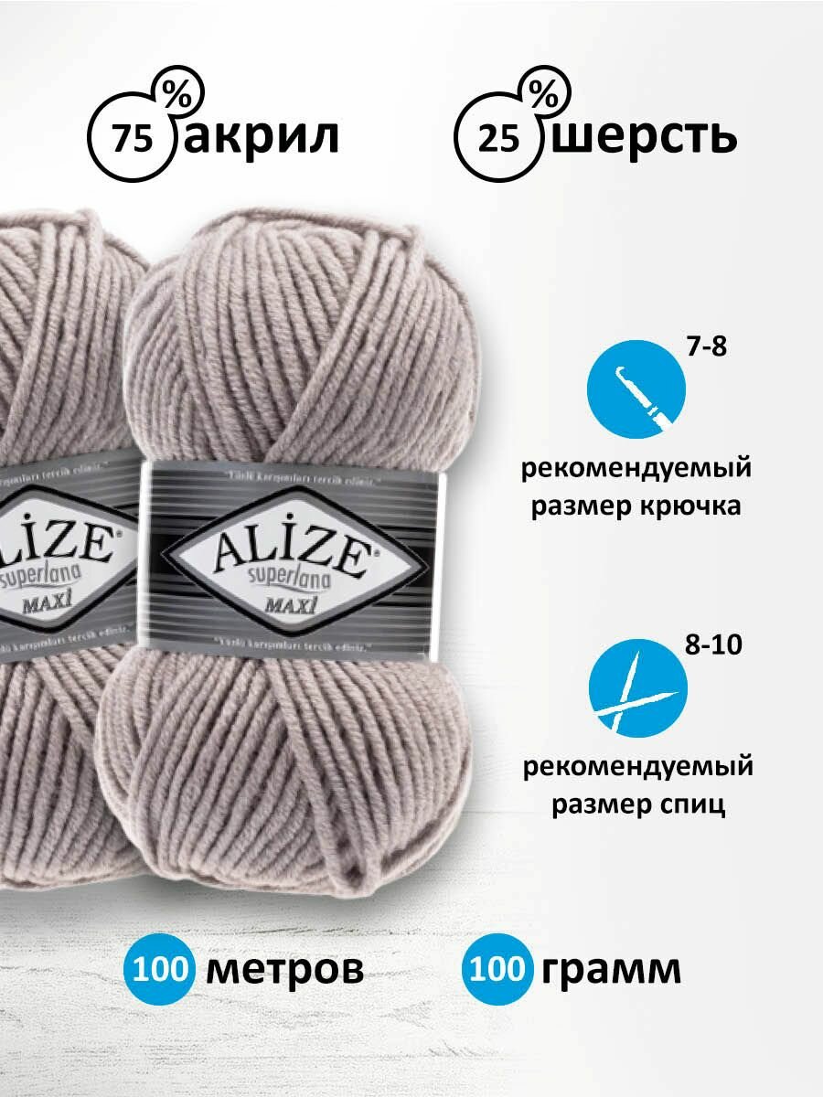 Пряжа Alize Superlana Maxi 466 темный беж (100г/100м, упаковка 5 мотков)