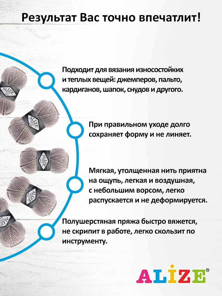 СохранитьПряжа для вязания ALIZE 'Superlana maxi', 100г, 100м (75% акрил, 25% шерсть), ТУ (652 пепельный), 5 мотков интересное: